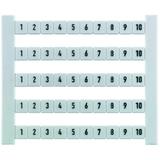 TERMINAL BLOCK MARKER, 1-10, 5MM CARD-50; Accessory Type:Terminal Marker; For Use With:All Conductors, Plug-In Connectors and Electronics Modules; Legend:1 to 10; Pitch Spacing:5mm; SVHC:No SVHC (18-Jun-2012)