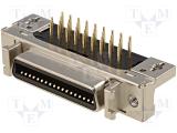 RECEPTACLE, MDR, R/A, 36WAY; Connector Type:Micro D; Gender:Receptacle; No. of Contacts:36; Contact Termination:Through Hole Right Angle; Connector Mounting:PCB; Contact Plating:Gold; Contact Material:Copper Alloy; SVHC:No SVHC (15-Dec-2010); Colour:Black; Connector Mounting Orientation:PCB; Connector Type:Micro D Ribbon; Contact Material:Copper Alloy; Contact Plating:Gold; Current Rating:1A; Flammability Rating:UL94V-0; Insulation Resistance:500Mohm; Insulator Material:Glass Reinforced Polyester (PCT); Material:Steel; Mounting Type:PC Board; No. of Poles:36; No. of Ways:36; Operating Temperature Max:105°C; Operating Temperature Min:-55°C; Pitch Spacing:1.27mm; Termination Method:Solder; Withstand Voltage:500V