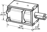 Guardian Electric Solenoid (Box Frame, 24DC, 258mA, 93.1 Ohms). Model: 11P-C-24D. More details: Solenoid, Box Frame, Body Length 1 13/16 In., Length 1 13/16 In., Width 15/16 In., Depth 1 3/16 In., Coil Volts 24DC, Seated Amps 258mA, Seated Watts 6.5, Coil Resistance (Ohms) 93.1, Coil Insulation Class 105, Terminals Solder Lug, Duty Cycle Continuous, Material of Construction Steel, Mounting Holes 6-32 UNC -2B (4 HOLES), From Mounting Holes to Plunger Hole 5/8 In., Standards UL, RoHs