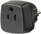 TRAVEL ADAPTOR, US-SCHUKO; Convert From:US Plug; Convert To:Earthed Socket; Connector Colour:Black; SVHC:No SVHC (20-Jun-2011); Connector Mounting Orientation:Wall; Connector Type:International Mains; Connector Type:Travel Adapter; No. of Outlets:1