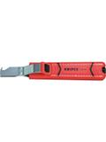 KNIPEX 16 20 165 SB Cable Stripper, 8 to 28mm, 9 In. More details: Cable Stripper, Insulated No, Overall Length 9 In., Capacity 8 to 28mm, Standard Tool (Accessory Needed for Tethering), Functions Strip Only, Adjustable Manual, Handle Type Cushion Grip, Features Self-Cocking Lever, Adjustable Screw For Stripping Depth, Stainless Steel Blade, Includes Knife, Hook Blade and Protective Cap
