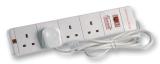 EXTENSION LEAD, 4 GANG, SWITCHED, 2M; Connector Type A:UK Plug; Connector Type B:UK Mains Socket; Current Rating:13A; Cable Length - Imperial:6.56ft; Cable Length - Metric:2m; Jacket Colour:White; Cable Assembly Type:Power; Plug Type:UK