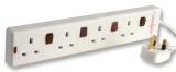 EXTENSION LEAD, 4 GANG, INDIV-SW, 2M; Voltage Rating:300VAC; Current Rating:13A; Cable Assembly Type:Mains; Cable Length:2m; Colour:White; Connector Colour:White; Connector Type:UK Plug; Connector Type:UK Mains; Connector Type A:UK Mains Plug; Connector Type B:UK Socket; External Depth:25mm; External Width:60mm; Lead Length:2m; Length:320mm; Material:Plastic; No. of Outlets:4; No. of Outputs:4; No. of Ways:4; Operating Voltage Range:220V to 240V; Outlet Type:UK Socket; Output Current:13A; Peak Surge Current:4.5kA; Plug Type:UK; Response Time:50ns; Strip Length:320mm; Suppressor Type:Varistor; Voltage Rating V AC:230V