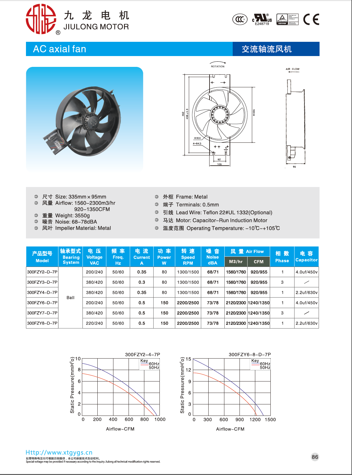 Осевой вентилятор переменного тока с двумя шариковыми подшипниками.