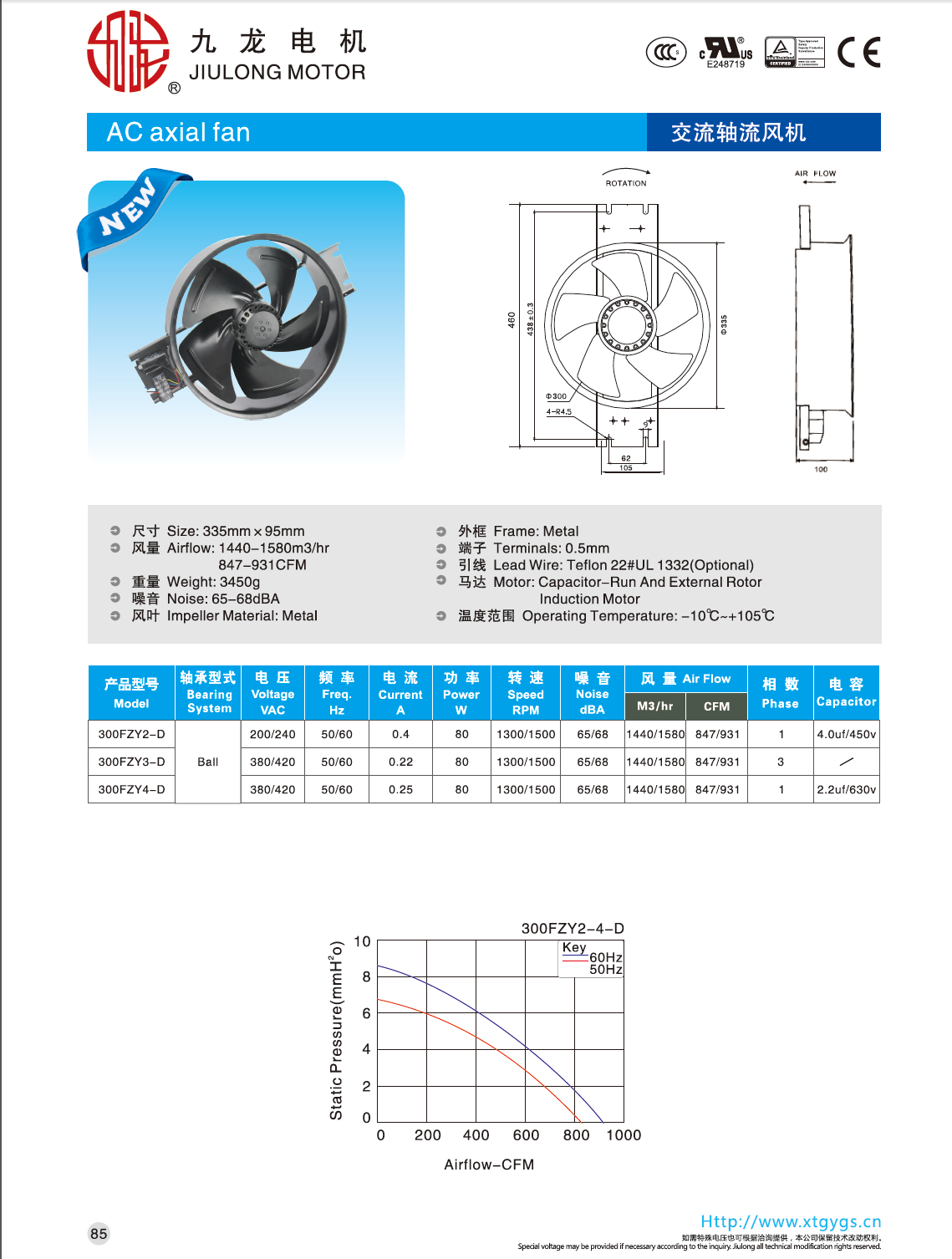 Осевой вентилятор переменного тока с двумя шариковыми подшипниками.