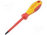 Ergonomically optimised 2-component grip for low-fatigue and reduced hand strain when applying pressure · Handle prevents rolling · Chrome/vanadium/molybdenum steel · Tip: burnished. · Handle: Insulating multi-component handle, VDE-certified.
