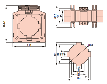 Трансформаторы тока серии ABO-100. Предназначены для преобразования тока и передачи сигнала на измерительные устройства, приборы учета электроэнергии или устройства защиты. Имеют широкий класс точности (3, 1, 0.5, 0.5S, 0.2, 0.2S) и ток первичной обмотки от 5 до 5000 А. Разработаны под два способа монтажа: на 3-сторонней базе или на токоведущей шине.