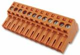 SOCKET BLOCK, SCREW, 12WAY; Connector Type:Terminal Block, Pluggable; Connector Mounting:Cable; Pitch Spacing:3.5mm; No. of Contacts:12; Wire Size (AWG):28 to 14 AWG; Contact Plating:Tin; Contact Material:Copper; SVHC:No SVHC (20-Jun-2011); Body Plating:Win Q; Colour:Orange; Connector Mounting Orientation:Cable; Connector Type:Terminal Block, PCB; Contact Material:Copper Alloy / Steel; Current Rating:17A; Insulator Material:PBT; Material:Steel, Win Q; Mounting Type:PCB Mount; No. of Poles:12; No. of Positions:12; No. of Ways:12; Operating Temperature Max:110°C; Operating Temperature Min:-20°C; Terminal Type:Screw; Voltage Rating VAC:250V; Wire Area Size Max:1.5mm²; Wire Area Size Min:0.2mm²; Wire Size AWG Max:28AWG; Wire Size AWG Min:14AWG; Wire Size Range (AWG):28-14; Working Voltage:250V