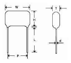 Пленочный конденсатор. Материал диэлектрика - металлизированная полиэфирная пленка. Герметизирован эпоксидной смолой. Отличительные особенности - малый размер, способность к самовосстановлению, стойкость к перегрузкам, длительный срок службы. Широко используется в фильтрах и схемах с низкой пульсацией.