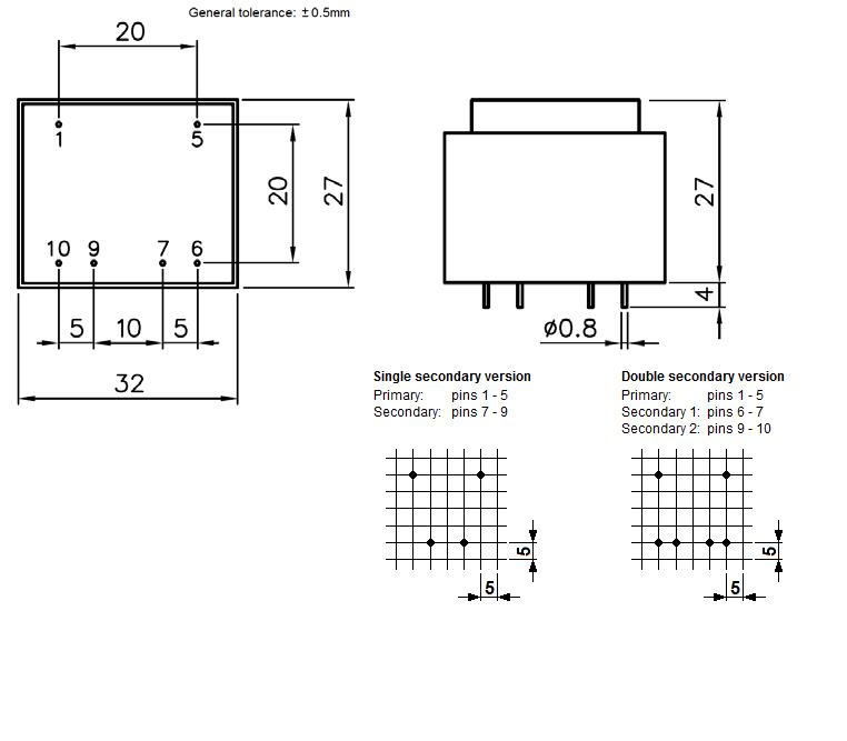 Трансформатор для монтажа на печатную плату. Герметизация эпоксидной смолой; электрическая прочность изоляции 5000 В. Соответствует европейскому стандарту качества EN61558. Применяется в устройствах, выполненных с использованием печатных плат: в компьютерах и их периферии, промышленных контроллерах, телекоммуникационных приборах, медицинском оборудовании, в схемах питания ламп освещения, измерительной технике, бытовых приборах. Предусмотрена защита от короткого замыкания.