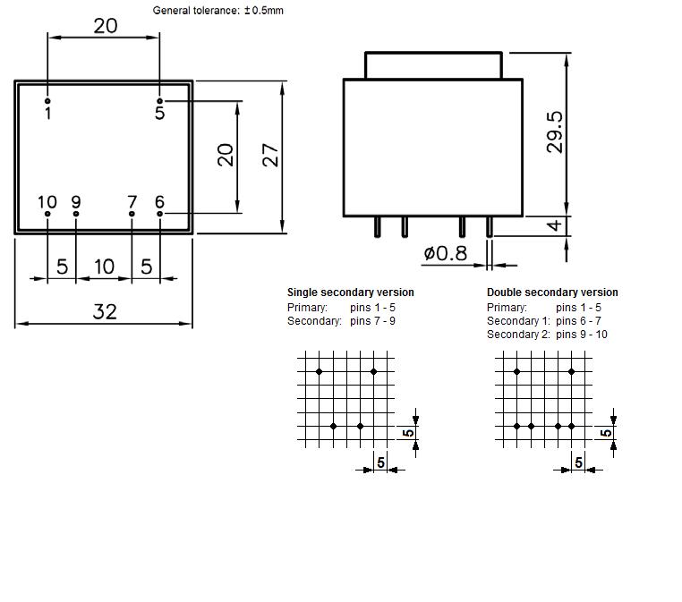 Трансформатор для монтажа на печатную плату. Герметизация эпоксидной смолой; электрическая прочность изоляции 5000 В. Соответствует европейскому стандарту качества EN61558. Применяется в устройствах, выполненных с использованием печатных плат: в компьютерах и их периферии, промышленных контроллерах, телекоммуникационных приборах, медицинском оборудовании, в схемах питания ламп освещения, измерительной технике, бытовых приборах. Предусмотрена защита от короткого замыкания.