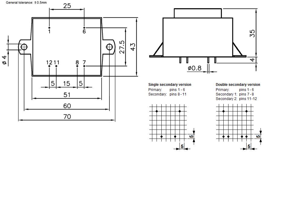 Трансформатор для монтажа на печатную плату. Герметизация эпоксидной смолой; электрическая прочность изоляции 5000 В. Соответствует европейскому стандарту качества EN61558. Применяется в устройствах, выполненных с использованием печатных плат: в компьютерах и их периферии, промышленных контроллерах, телекоммуникационных приборах, медицинском оборудовании, в схемах питания ламп освещения, измерительной технике, бытовых приборах.