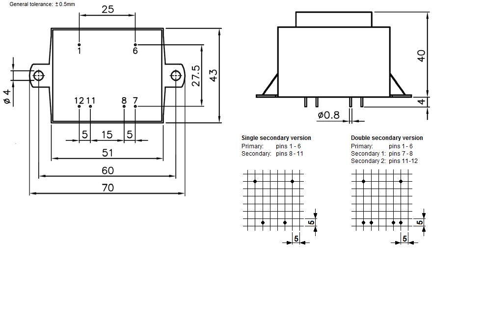 Трансформатор для монтажа на печатную плату. Герметизация эпоксидной смолой; электрическая прочность изоляции 5000 В. Соответствует европейскому стандарту качества EN61558. Применяется в устройствах, выполненных с использованием печатных плат: в компьютерах и их периферии, промышленных контроллерах, телекоммуникационных приборах, медицинском оборудовании, в схемах питания ламп освещения, измерительной технике, бытовых приборах.