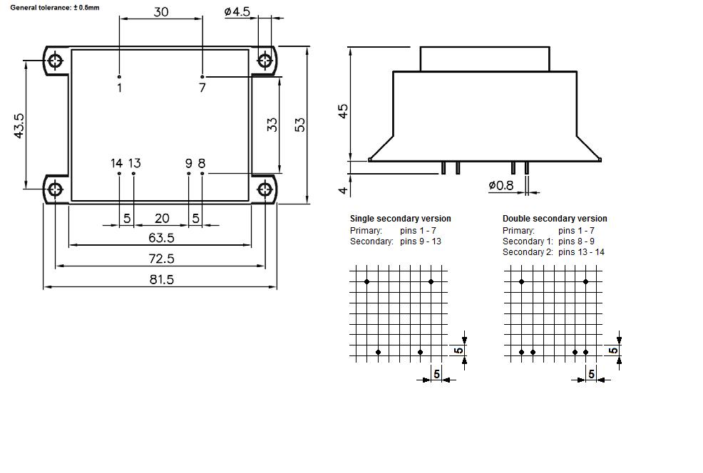 Трансформатор для монтажа на печатную плату. Герметизация эпоксидной смолой; электрическая прочность изоляции 5000 В. Соответствует европейскому стандарту качества EN61558. Применяется в устройствах, выполненных с использованием печатных плат: в компьютерах и их периферии, промышленных контроллерах, телекоммуникационных приборах, медицинском оборудовании, в схемах питания ламп освещения, измерительной технике, бытовых приборах.