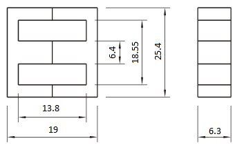 Ш-образные сердечники применяются в трансформаторах DC-DC преобразователей, в строчных трансформаторах и других устройствах с рабочими частотами 1-100 кГц. Позволяют уменьшить индуктивность рассеивания и снизить потери от собственной емкости.