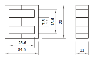Ш-образные сердечники применяются в трансформаторах DC-DC преобразователей, в строчных трансформаторах и других устройствах с рабочими частотами 1-100 кГц. Позволяют уменьшить индуктивность рассеивания и снизить потери от собственной емкости.