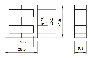 Ш-образные сердечники применяются в трансформаторах DC-DC преобразователей, в строчных трансформаторах и других устройствах с рабочими частотами 1-100 кГц. Позволяют уменьшить индуктивность рассеивания и снизить потери от собственной емкости.