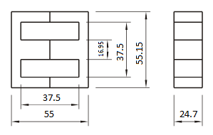 Ш-образные сердечники применяются в трансформаторах DC-DC преобразователей, в строчных трансформаторах и других устройствах с рабочими частотами 1-100 кГц. Позволяют уменьшить индуктивность рассеивания и снизить потери от собственной емкости.