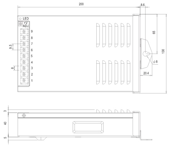 Импульсный AC-DC источник питания, номинальная мощность 350 Вт. Универсальный вход 180-264 VAC. Светодиодный индикатор включения. Комплекс защит: от перегрузки, от перенапряжения, от короткого замыкания, от перегрева. Корпус защищен от дождя. Для широкого применения.