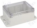 Герметичный корпус из поликарбоната с прозрачной крышкой и фланцем, IP65, светло-серый