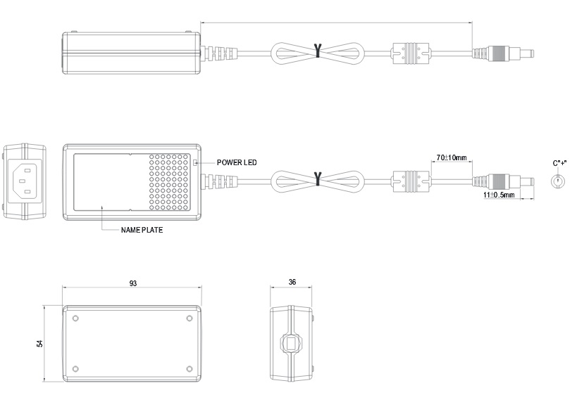 AC-DC источник питания, настольный. Номинальная мощность 18 Вт. Универсальный вход 90-264VAC. I класс мощности. Светодиодный индикатор включения. Комплекс защит: от перегрузки, от перенапряжения, от короткого замыкания.