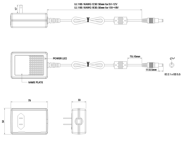 AC-DC источник питания, настенный. Номинальная мощность 25 Вт. Универсальный вход 90-264VAC. II класс мощности. Светодиодный индикатор питания. Комплекс защит: от перегрузки, от перенапряжения, от короткого замыкания.