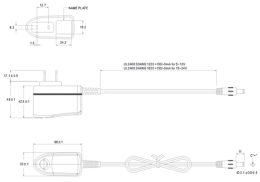 AC-DC источник питания, настенный. Номинальная мощность 6 Вт. Универсальный вход 85-264VAC. Низкий ток утечки. II класс мощности. Комплекс защит: от перегрузки, от перенапряжения, от короткого замыкания. Применяется в медицинском оборудовании.