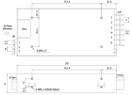 Высокоэффективный ипульсный AC-DC источник питания, номинальная мощность 451 Вт. Обладает коррекцией коэффициента мощности PFC. Универсальный вход 85-264VAC. Ограничение тока, сигнал DC OK, компенсация на проводах. Выдерживает 300VAC входного перенапряжения в течение 5 секунд. Комплекс защит: от перегрузки, от перенапряжения, от короткого замыкания, от перегрева.