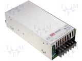 Высокоэффективный импульсный AC-DC источник питания, номинальная мощность 600 Вт. Обладает коррекцией коэффициента мощности PFC. Универсальный вход 85-264VAC. Компенсация на проводах, ограничение тока, сигнал DC OK. Выдерживает 300VAC входного перенапряжения в течение 5 секунд. Комплекс защит: от перегрузки, от перенапряжения, от короткого замыкания, от перегрева.