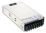 Высокоэффективный ипульсный низкопрофильный AC-DC источник питания, номинальная мощность 330 Вт. Обладает коррекцией коэффициента мощности PFC. Универсальный вход 85-264VAC. Дополнительный выход 5В/0.3А, дистанционное включение/выключение, ограничение тока, сигнал DC OK, компенсация на проводах. Выдерживает 300VAC входного перенапряжения в течение 5 секунд. Комплекс защит: от перегрузки, от перенапряжения, от короткого замыкания, от перегрева.