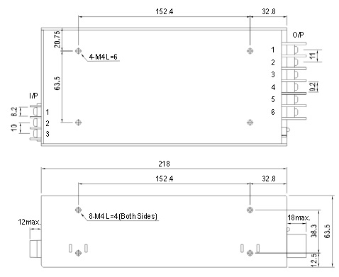 Высокоэффективный импульсный AC-DC источник питания, номинальная мощность 396 Вт. Обладает коррекцией коэффициента мощности PFC. Универсальный вход 85-264VAC. Дополнительный выход 5В/0.3А, дистанционное включение/выключение, компенсация на проводах, ограничение тока, сигнал DC OK. Выдерживает 300VAC входного перенапряжения в течение 5 секунд. Комплекс защит: от перегрузки, от перенапряжения, от короткого замыкания, от перегрева.