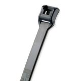 Cable Tie, In-Line, 11.5 Inches (292 mm) Length, Standard, Black. Weather Resistant for greater resistance to damage caused by ultraviolet light. Indoor or outdoor use. Parallel-entry cable tie that threads like a belt (180 degrees entry). Low profile head avoids snags and reduces overall bundle size, 35 percent lower head height than conventional 90 degree ties. Parallel-entry limits exposure to sharp edges and protects workers arms/hands. Curved tip is easy to pick up from flat surfaces and allows faster initial threading.