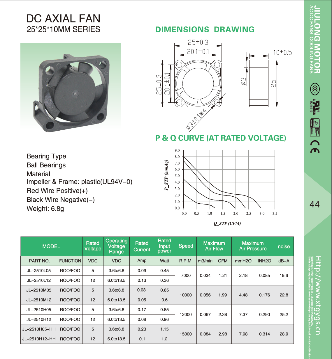 Осевой вентилятор с шариковым подшипником или подшипником скольжения с долгим сроком службы