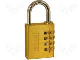 PADLOCK, BRASS, COMBINATION, 30MM; Width:30mm; Shackle Clearance - Horizontal:14mm; Shackle Clearance - Vertical:24mm; Shackle Diameter:4.8mm; Lock Material:Brass; SVHC:No SVHC (19-Dec-2012); Body Material:Brass; Material:Brass; Size;RoHS Compliant: NA