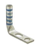 Copper Compression Lug, 2 Hole, No. 6 American Wire Gauge (AWG), Long Barrel, 1/4 Inch (6.4 mm) Stud, Slotted Tongue, 90 Degree Bent, Long barrel maximizes number of crimps and provides premium wire pull-out strength and electrical performance, Inspection window to visually assure full conductor insertion, Color-coded barrels marked with Panduit and specified competitor die index numbers for proper crimp die selection, Tin-plated to inhibit corrosion, UL Listed and CSA Certified to 35 KV and temperature rated to 90 Degrees Celsius when crimped with Panduit and specified competitor crimping tools and dies, UL Listed and CSA Certified for wide wire range-taking capability when crimped with Panduit Uni-Die Dieless Crimping Tools, Tested by Telcordia - meets NEBS Level 3, Meets J-STD-607-A and TIA-942 requirements for network systems grounding applications, Available with NEMA hole sizes and spacing.