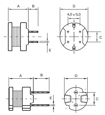 Радиальные силовые индуктивности, серии LCH4W. Отличаются высокой надежностью, отличной теплостойкостью, высокими экологическими характеристиками. Применяются в источниках питания, радиоаппаратуре, фильтрах и для подавления радиочастотных помех.