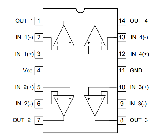 Двухканальный операционный усилитель в корпусе DIP-14.