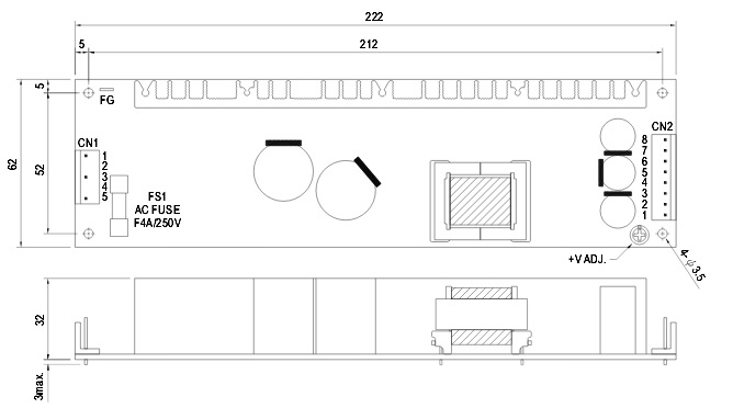 Импульсный AC-DC источник питания. Номинальная мощность 102 Вт. Универсальный вход 88-132VAC (для сети 115В) /176-264VAC (для сети 230В). Комплекс защит: от перегрузки, от перенапряжения, от короткого замыкания. Фиксированная частота коммутации при 134 кГц.