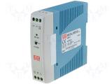 Импульсный AC-DC источник питания на DIN-рейку. Номинальная мощность 20 Вт. Универсальный вход 85-264VAC. Сигнал DC ОК. Светодиодный индикатор включения. Комплекс защит: от перегрузки, от перенапряжения, от короткого замыкания.