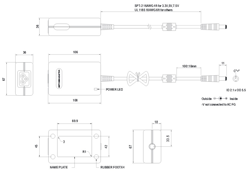 AC-DC источник питания, настольный. Номинальная мощность 30 Вт. Универсальный вход 90-264VAC. I класс мощности. Низкий ток утечки. Фиксированная частота коммутации и регулирования. Светодиодный индикатор питания. Комплекс защит: от перегрузки, от перенапряжения, от короткого замыкания, от перегрева. Применяется в медицинском оборудовании.