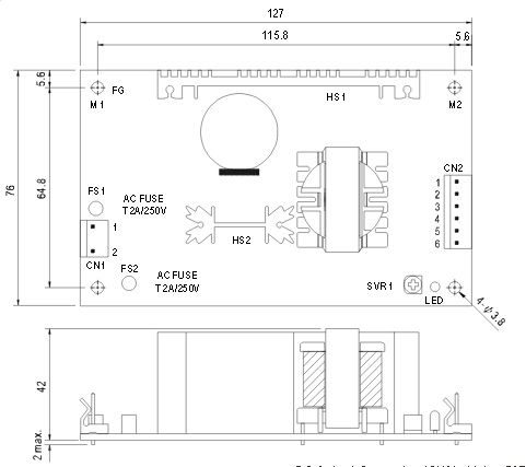 Импульсный AC-DC источник питания. Номинальная мощность 63 Вт. Универсальный вход 90-264VAC. Фиксированная частота коммутации при 45 кГц. Низкий ток утечки. Комплекс защит: от перегрузки, от перенапряжения, от короткого замыкания. Применяется в медицинском оборудовании.