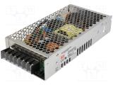 Высокоэффективный импульсный низкопрофильный AC-DC источник питания, номинальная мощность 200 Вт. Универсальный вход 85-264VAC. Выдерживает 300VAC входного перенапряжения в течение 5 секунд. Обладает коррекцией коэффициента мощности PFC. Дополнительный выход 5В/0.3А, дистанционное включение/выключение. Применяются в медицинском оборудовании. Комплекс защит: от перегрузки, от перенапряжения, от короткого замыкания, от перегрева.