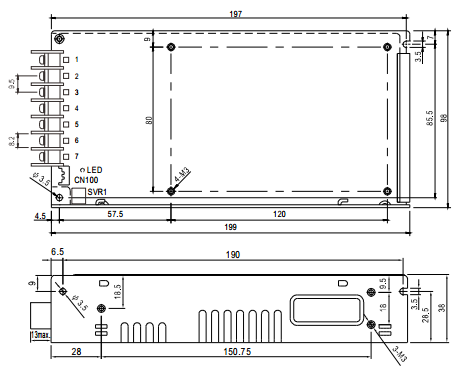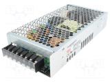 Высокоэффективный импульсный низкопрофильный AC-DC источник питания, номинальная мощность 205 Вт. Универсальный вход 85-264VAC. Выдерживает 300VAC входного перенапряжения в течение 5 секунд. Обладает коррекцией коэффициента мощности PFC. Дополнительный выход 5В/0.3А, дистанционное включение/выключение. Применяются в медицинском оборудовании. Комплекс защит: от перегрузки, от перенапряжения, от короткого замыкания, от перегрева.