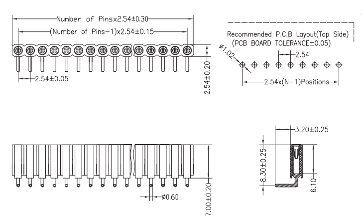 Панель для микросхемы однорядная, угловая на плату, шаг 2.54 мм. Количество контактов от 1 до 40.