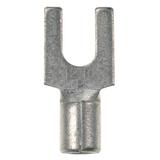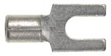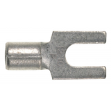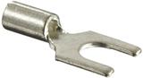 Fork Terminal, Non-Insulated, 18 - 14 American Wire Gauge (AWG), No. 10 Stud Size. Fork design provides for fast and easy installation, without the need to remove fastener. Internal barrel serrations assure good wire contact and maximum tensile strength. Brazed seam protects terminal barrel from splitting during the crimp process. Barrel of terminal internally beveled to provide quick and easy wire insertion. Maximum recommended operating temperature 302 degrees Fahrenheit (150 degrees Celsius). UL and CSA rated up to 2000 Volts per UL 486A/B. Standard Package.