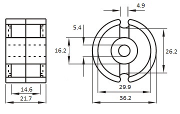 Сердечники применяются в трансформаторах DC-DC преобразователей, в строчных трансформаторах и других устройствах с рабочими частотами 1-100 кГц. Позволяют уменьшить индуктивность рассеивания и снизить потери от собственной емкости.