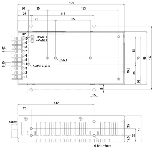 Импульсный AC-DC источник питания, номинальная мощность 103 Вт. Универсальный вход 90-264VAC. Встроенная активная PFC функция. Комплекс защит: от перегрузки, от перенапряжения, от короткого замыкания. Для широкого применения.