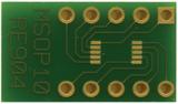ADAPTOR, SMD, MSOP-10; Board Material:FR4 Epoxy Glass; External Height:10.4mm; External Width:18.1mm; Board Thickness:1.5mm; Board Connector / Footprint:MSOP-10; SVHC:No SVHC (20-Jun-2011); Board Material:Epoxied FR4; Connector Type:MSOP-10; Copper Coating Density:chem. Au 0.08 - 0.1 µm; Copper Thickness:35µm; External Length / Height:10.4mm; Hole Pitch:2.54mm; Material:Epoxied FR4; No. of Copper Coated Sides:2; No. of Holes:10; PCB Hole Diameter:1mm; PCB Size:18.10 x 10,40 mm; Pad Area:1.50 mm Ø; Pad Diameter:1.5mm; Pitch Spacing:2.54mm; Row Pitch:0.5mm; Type:SMT Device Adapter