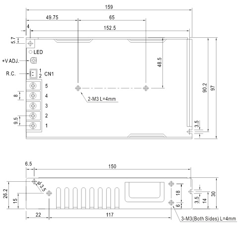 Импульсный низкопрофильный AC-DC источник питания, номинальная мощность 77 Вт. Обладает коррекцией коэффициента мощности PFC. Универсальный вход 85-264 VAC. Дистанционное включение/выключение, ограничение тока. Комплекс защит: от перегрузки, от перенапряжения, от короткого замыкания. Для широкого применения.