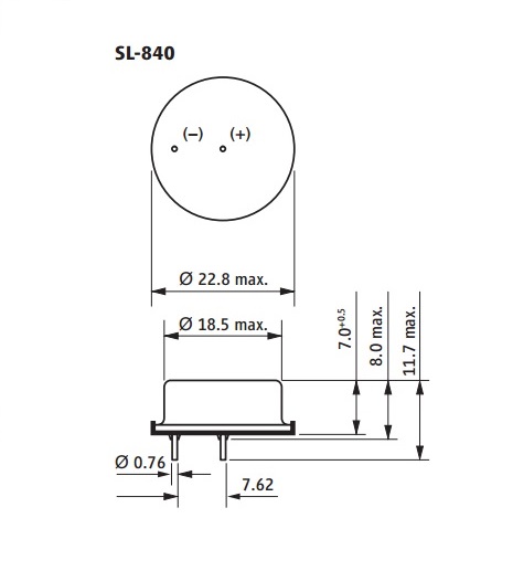 Литий-Тионилхлоридная батарея, тип BEL, номинальное напряжение 3,6 В, номинальная ёмкость 0,42 А·ч, номинальный ток 0,5 мА, максимальный ток постоянного разряда 5 мА. Стабильное значение напряжения и тока в течении всего срока службы. Подключение: 2 вывода на печатную плату.